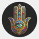Peacock Colour Flower Petals Hamsa Green Third Eye Classic Round Sticker