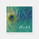 Peacock Feather Blue Teal Gold Exotic Custom Party napkins. Customise with any text.