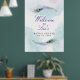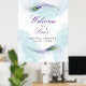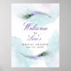Peacock Feather Custom Sign. This simple and elegant welcome sign is created with colourful peacock feathers and a watercolor texture. The background of the design is set to white but it can be changed to any colour you would prefer.