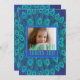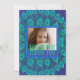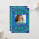 Customisable Birthday Thank You card! This gorgeous peacock feather inspired design comes in bright colours - blue and aqua. Between the beautiful peacock bird tail feathers is a framed area for customisable content. On the front there is a photo and text, on the reverse there is space for a personal message of thanks and appreciation.