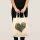 Fun peacock bag with a double heart with peacock feathers against a rock background in a heart shaped design. Great grocery bag or put it on a different bag