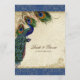 "Peacock Feather Elegant Classic Navy Dinner Menu." Matching Dinner Menu Card. The bride and groom's names and wedding date are on the front of this design. This antique vintage inspired wedding collection has a complete ensemble of products and can be created in several colorways. If you would like it to match your wedding let us know via email and we'll be happy to assist you. This design consists of a stately peacock on a tree branch vintage art element layered three peacock feathers and over an angel etching, swirls, antique handwriting, hand painted lace overlayed on parchment and a beautiful original art damask pattern. The background colour can be changed to match your wedding.