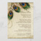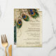 COLOR PALETTE: cream, tan, cream, royal blue, green, and rust. DESIGN: Matching Dinner Menu Card. The bride and groom's names and wedding date are on the front of this design. This antique vintage inspired wedding collection has a complete ensemble of products and can be created in several colorways. If you would like it to match your wedding let us know via email and we'll be happy to assist you. This design consists of a stately peacock on a tree branch vintage art element layered three peacock feathers and over an angel etching, swirls, antique handwriting, hand painted lace overlaid on parchment and a beautiful original art damask pattern. The background colour can be changed to match your wedding.