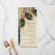 COLOR PALETTE: cream, tan, cream, royal blue, green, and rust. DESIGN: Matching Dinner Menu Card. The bride and groom's names and wedding date are on the front of this design. This antique vintage inspired wedding collection has a complete ensemble of products and can be created in several colorways. If you would like it to match your wedding let us know via email and we'll be happy to assist you. This design consists of a stately peacock on a tree branch vintage art element layered three peacock feathers and over an angel etching, swirls, antique handwriting, hand painted lace overlaid on parchment and a beautiful original art damask pattern. The background colour can be changed to match your wedding.