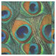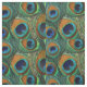 This custom fabric features a repeating pattern of peacock feathers in natural shades of golden tan, aqua, teal, green, navy, purple, and black. A fabric for creating peacock feather themed crafts, quilts, clothing, wedding and special event fashions and party decor. Show off your inner peacock by creating a great design with this stylish fabric.