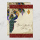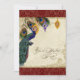 PAPER SELECTION: This is shown on "basic paper", another great choice would be "metallic ice" which is a clean white, pearlized shimmery surface. It would also be beautiful on "Champagne Metallic" linen, felt or any of the other choices. COLOR PALETTE: deep burgundy red, tan, cream royal blue, green, and rust. DESIGN: This antique vintage inspired Christmas collection has a complete ensemble of products and can be created in several colorways. If you would like it to match your event let us know via email and we'll be happy to assist you. This design consists of a hand calligraphy hand written font "You're Invited to a Party" and a stately peacock on a tree branch vintage art element layered three hand painted, watercolor ornaments by Audrey Jeanne Roberts, and three peacock feathers over an angel etching, swirls, antique handwriting, hand painted lace overlaid on parchment and a beautiful original art damask pattern. The background colour can be changed to match your wedding. On the reverse side is another set of ornaments over the peacock feathers and your invitation information. There are matching envelopes, tickets , seals, stickers, labels, favour gift tags, seating charts, table numbers and table seating cards to make customising your event simple and painless! Quantity discount and bulk pricing are available for larger events.