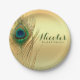 Peacock Feather Gold Exotic Boho Chic Custom Party Plates. Make the background any colour.