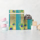 This beautiful hand watercolored artwork was painted by Audrey Jeanne Roberts. The front cover has a deep teal blue background, an exquisitely detailed hand painted, swirled, scroll peacock feather with graphically designed jewels over a gold look border. NOTE: This is a flat printed design with the appearance of three dimensional aspects. There are no raised layers or actual gold in the design.