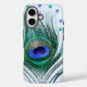 A beautiful photograph of a peacock feather with blue jewels is featured on this custom iPhone case.