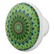 Peacock Feather Mandala Emerald and Blue Symmetry Ceramic Knob