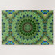 Peacock Feather Mandala Emerald and Blue Symmetry Jigsaw Puzzle