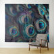 This stunning close-up photo showcases the intricate beauty of a peacock feather motif. The image captures the vivid and iridescent colours of the feather, ranging from deep blues and greens to shimmering golds and purples. Each delicate strand and eye-catching pattern is displayed in exquisite detail, highlighting the natural elegance and artistry found in nature. Perfect for adding a touch of exotic allure and sophistication to any design or project