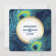 Peacock Feather Navy Blue Gold Wedding Invitation