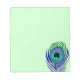 Notepad features a large peacock feather on a pale mint background. Find coordinating stationery and envelopes in my shop. Click the orange "customise it" button to add a name or quote, change the background colour or add a monogram.