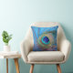 Peacock Feather On Blue Accent Pillow