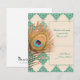 Peacock Feather on Teal Moroccan Tile RSVP Card