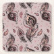 Peacock feather pattern square paper coaster