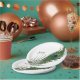 A set of unique paper plates for your elegant wedding event. It features an image of an elegant peacock feather towards the side.  On the opposite side of this are your bride and groom's initials and wedding or engagement date.