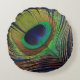 peacock feather round pillow home decor macro photo art copyright Ann Powell all rights reserved