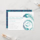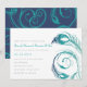 Modern and unique Invitation in Peacock inspired hues. Colours shown: Light Grey, Teal and Navy. Feather pattern background continues on the backside (print additional RSVP or travel information on the reverse).