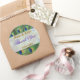 Peacock Feather Thank you Stickers. Design features background peacock feathers in deep greens and blues with the Phrase 'Thank You" and text fields for entering your names or event and event date. Wording, text colour and style can be changed in the 'Customise' Menu
