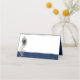 Pretty wedding folded place card done in white, with graphics of a peacock feather, pearls, silver flourish. The backside and the bottom front is done in blue on blue damask with a silver accent border. The inside of the tent style card is done in in the same blue damask pattern. Personalise by hand, for each person at your reception.