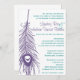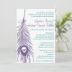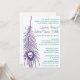 Wedding invitation with purple peacock feather and turquoise writing, there is an RSVP to match