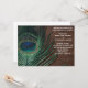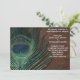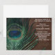 This colourful peacock feather makes an awesome wedding invitation. The vibrant green and blue colours of the feathers' eyes make a remarkable contrast to the brown background with gold flecks. Make your customised invites perfect for your peafowl wedding. Each invitation comes with a white envelope.