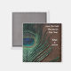 This colourful peacock feather makes an awesome wedding save the date magnet. The vibrant green and blue colours of the feathers' eyes make a remarkable contrast to the brown background with gold flecks. Make your customised magnets perfect for your peafowl wedding.