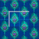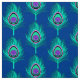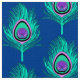 Peacock Feathers, Aqua on Deep Cobalt Blue Fabric