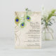 COLOR PALETTE: Black, tan, cream, gold, blue, green and purple. DESIGN COLLECTION: Matching formal event or reception dinner menu card. This is part of a Wedding Invitation Sets of complete matching products. These modern, contemporary Peacock Feathers Wedding Invitations are trendy, elegant and chic. The artwork is from original watercolor art hand painted by Audrey Jeanne Roberts. There is a background of textured, tea stained, teastained, antiqued lace, stylised, modern peacock feathers and a coordinating colour side border. On the reverse side is your personalised wedding invitation text, a set of peacock feathers with hand drawn swirl scroll flourishes in tan and a subtle swirled swirling calligraphic line drawing damask pattern.