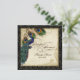 PAPER SELECTION: This is shown on "basic paper", another great choice would be "metallic ice" which is a clean white, pearlized shimmery surface. It would also be beautiful on "Champagne Metallic" linen, felt or any of the other choices. COLOR PALETTE: black, tan, cream royal blue, green, and rust. DESIGN: This antique vintage inspired wedding collection has a complete ensemble of products and can be created in several colorways. If you would like it to match your wedding let us know via email and we'll be happy to assist you. This design consists of a stately peacock on a tree branch vintage art element layered three peacock feathers and over an angel etching, swirls, antique handwriting, hand painted lace overlayed parchment and a beautiful original art damask pattern. The background colour can be changed to match your wedding.
