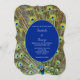 Peacock Feathers & Calligraphy on Blue Wedding Invitation