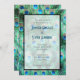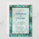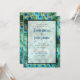 Art deco style wedding invitation with a brightly coloured pattern. Exotic and wild peacock feathers in pretty teal, jewel green, aqua and cobalt blue. Artistic and fancy, created with watercolors. A chic and stylish design.