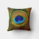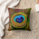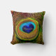 A deco pillow with a stunning closeup photograph of a vibrant and beautiful heart shaped blue eye of a gorgeous turquoise and gold peacock bird feather. Personalise by adding your name. Perfect way for bird lovers to say: I love Peacocks!