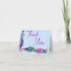 Peacock Feathers & Flowers Quinceañera Baby Blue Thank You card! Beautiful and elegant Quinceañera thank you cards set against a baby blue background. This peacock feathers and floral design of purple, blue, green, and pinks is the perfect accompaniment for your daughter's Quinceañera Party. A great way to thank the guests that attended your special occasion. Perfect for those who love peacock feathers and flowers.