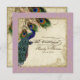 PAPER SELECTION: This is shown on "basic paper", another great choice would be "metallic ice" which is a clean white, pearlized shimmery surface. It would also be beautiful on "Champagne Metallic" linen, felt or any of the other choices. COLOR PALETTE: aqua blue, tan, cream royal blue, green, and rust. DESIGN: This antique vintage inspired wedding collection has a complete ensemble of products and can be created in several colorways. If you would like it to match your wedding let us know via email and we'll be happy to assist you. This design consists of a stately peacock on a tree branch vintage art element layered three peacock feathers and over an angel etching, swirls, antique handwriting, hand painted lace overlaid parchment and a beautiful original art damask pattern. There is a wonderfully swirls and flourish hand calligraphy font text that reads, "The Wedding of." The background colour can be changed to match your wedding.