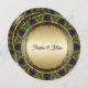 Peacock feathers design featuring the vibrant peacock colours in geometric mandala pattern. Makes this into a stunning round Special Event / Wedding Menu - that would look great placed on the wedding guest plates. Theme : Bright vibrant shades of green, indigo blue, gold • ♦ • Customisable double sided wedding reception luncheon or dinner menu with other side of card with elegant style layout for bride and groom's names, wedding dates and monogram / initials. • ♦ • Personalise with your special event info. I have added text using the curved style on both sides of this beautiful round menu to make it easy for you. If you don't need it, just delete (leave the space blank).