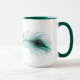 Blue, turquoise, purple, orange and green hand drawn peacock feathers.