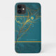 Lovely paisley print in deep teal hues with aqua and gold peacock feather accents in this beautiful phone case with your monogram or name.
