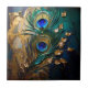 Peacock feathers pearl leaf faux gold foil marbled tile