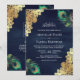Peacock Feathers QR Code Navy Blue Muslim Wedding Invitation