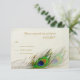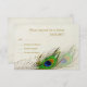 Colourful peacocks feathers on a pale cream vintage background RSVP Invitation.