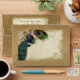 PRODUCTION TIME: Envelopes are hand printed on two sides and then hand assembled, so they take longer to make and ship than the invitations. Currently quoted as 7-10 plus shipping time. Please allow extra time in your ordering so that you aren't over-stressed waiting for them to arrive! COLOR PALETTE: gold metallic, tan, cream, royal blue, green, and rust. DESIGN: Matching Wedding Invitation or Save the Date envelopes. This antique vintage inspired wedding collection has a complete ensemble of products and can be created in several colorways. If you would like it to match your wedding let us know via email and we'll be happy to assist you. This design consists of a stately peacock on a tree branch vintage art element layered three peacock feathers and over an angel etching, swirls, antique handwriting, hand painted lace overlaid parchment and a beautiful original art damask pattern. The background colour can be changed to match your wedding.