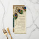 COLOR PALETTE: gold metallic, tan, cream, royal blue, green, and rust. DESIGN: Matching Dinner Menu Card. The bride and groom's names and wedding date are on the front of this design. This antique vintage inspired wedding collection has a complete ensemble of products and can be created in several colorways. If you would like it to match your wedding let us know via email and we'll be happy to assist you. This design consists of a stately peacock on a tree branch vintage art element layered three peacock feathers and over an angel etching, swirls, antique handwriting, hand painted lace overlaid on parchment and a beautiful original art damask pattern. The background colour can be changed to match your wedding.