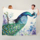 Peacock floral watercolor fleece blanket
