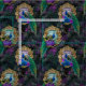 Peacock, Flowers, and Gold Frame Fabric