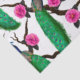 Peacock birds perching on branches and pink camellia flowers, this pattern is hand drawn in Photoshop.