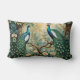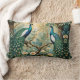 Peacock Golden Teal Floral Jungle Lumbar Cushion