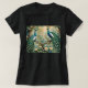 Beautiful Peacock and golden flowers in a blue green rainforest jungle watercolor